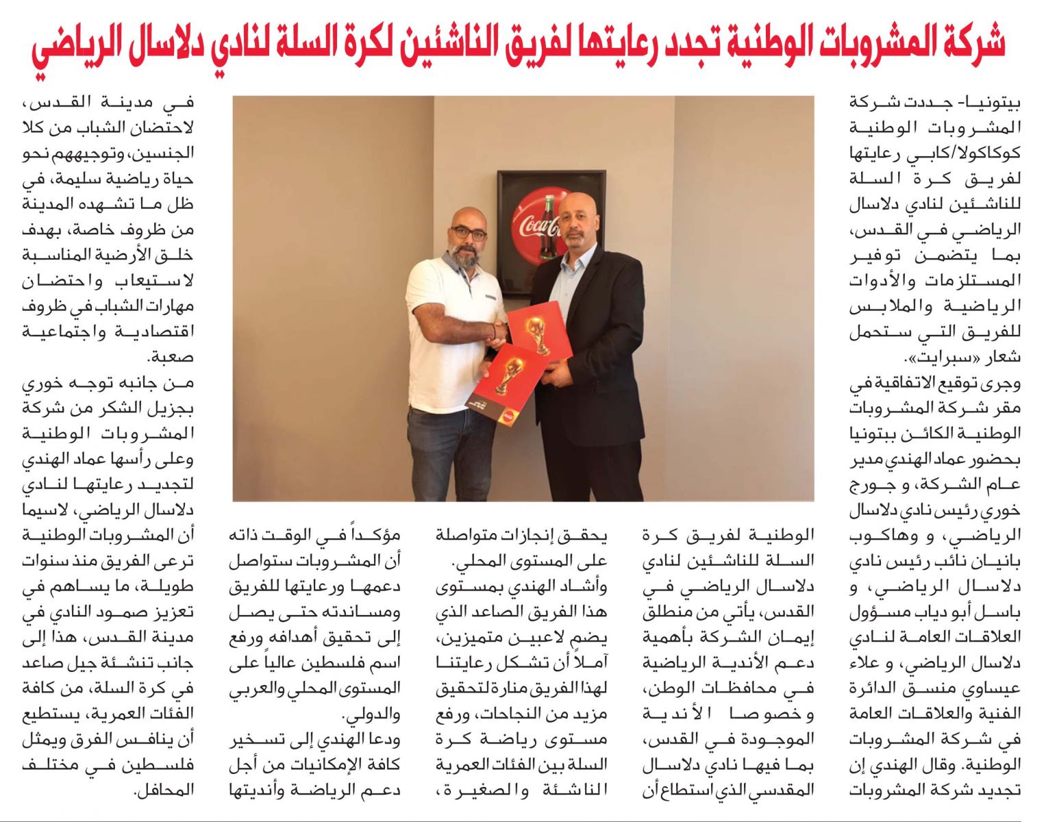 شركة المشروبات الوطنية تجدد رعايتها لفريق الناشئين لكرة السلة لنادي دلاسال الرياضي
