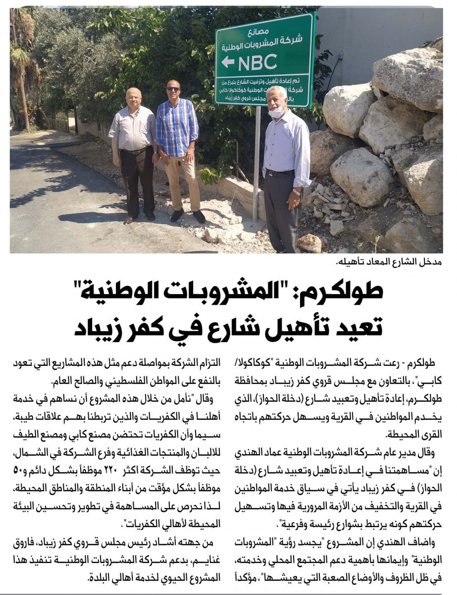 طولكرم: المشروبات الوطنية تعيد تأهيل شارع في كفر زيباد