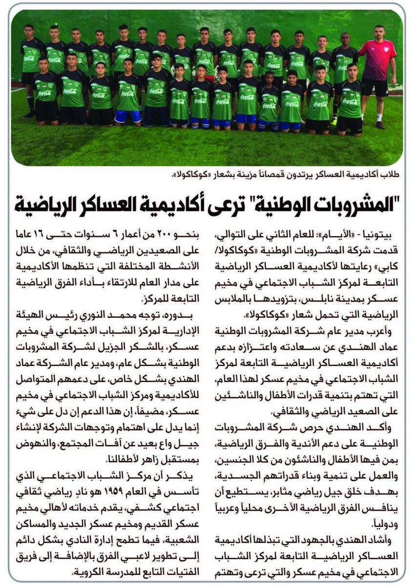 المشروبات الوطنية ترعى اكاديمية العساكر الرياضية