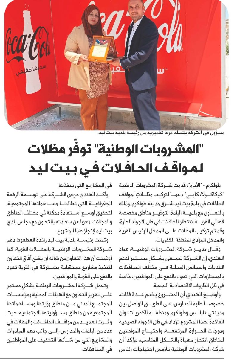 المشروبات الوطنية توفر مظلات لمواقف الحافلات في بيت ليد