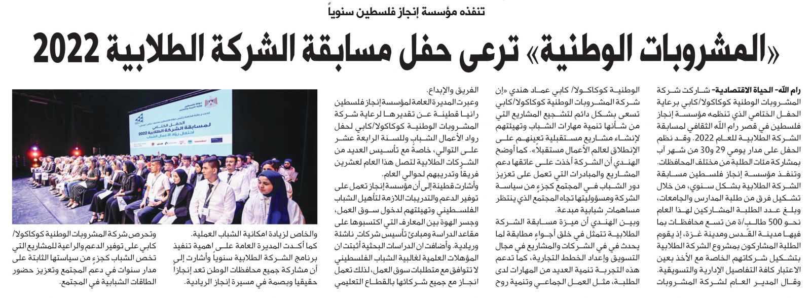 " المشروبات الوطنية " ترعى حفل مسابقة الشركة الطلابية 2022