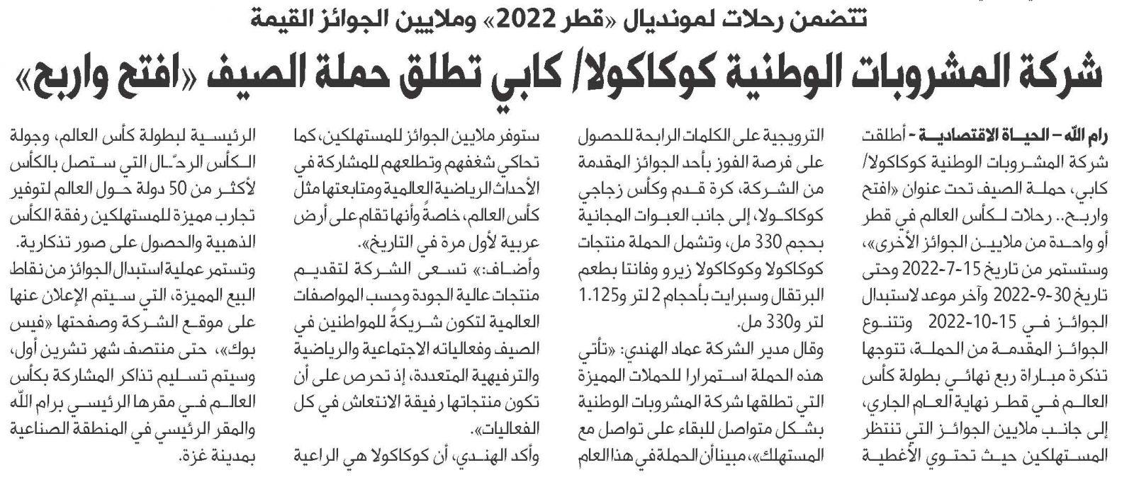 شركة المشروبات الوطنية كوكاكولا/كابي تطلق حملة الصيف