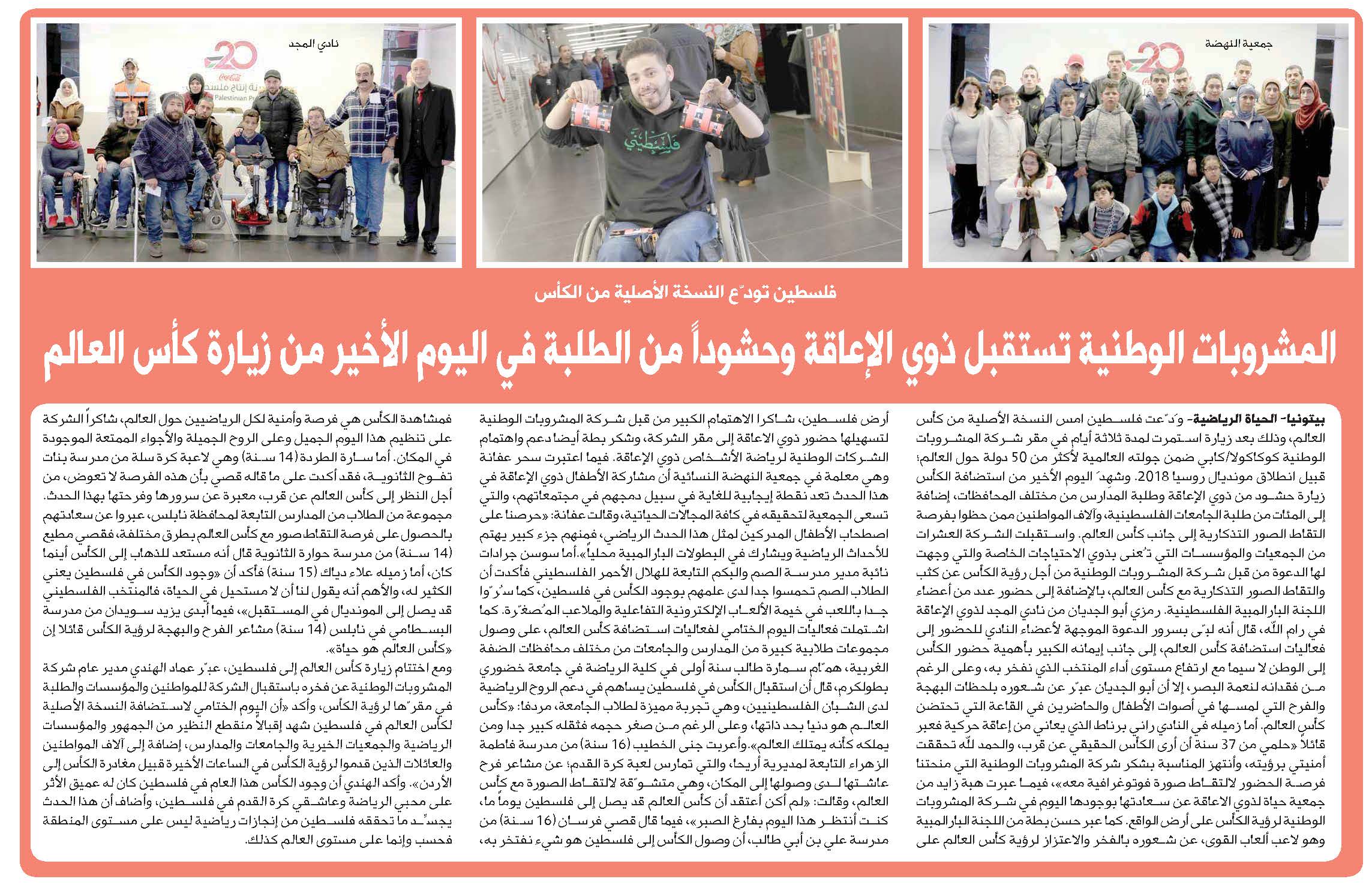 فلسطين تودع النسخة الأصلية من الكأس....المشروبات الوطنية تستقبل ذوي الإعاقة وحشوداً من الطلبة في اليوم الأخير من زيارة كأس العالم