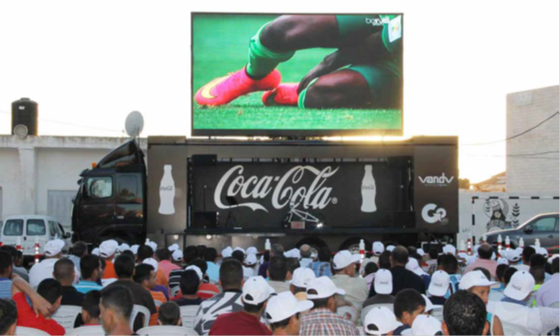 Ramallah – Alayyam: As the round of 16 teams of World Cup 2014 started, the Coca-Cola Truck “GO LED” continued its tour in the Palestinian cities and villages to show World Cup matches in public and main squares to satisfy the large Palestinian audiences of World Cup matches. As competition between the leading international teams became fiercer, GO LED provided an exciting environment for the public to watch the matches for free through the final match.