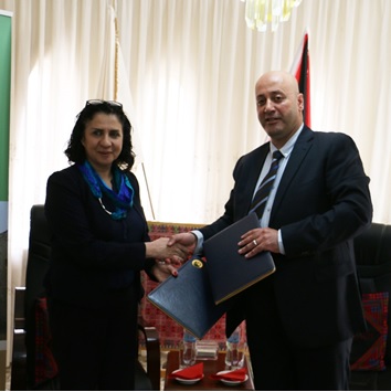 Caption: Mr. al-Hindi and Baboun signing the agreement