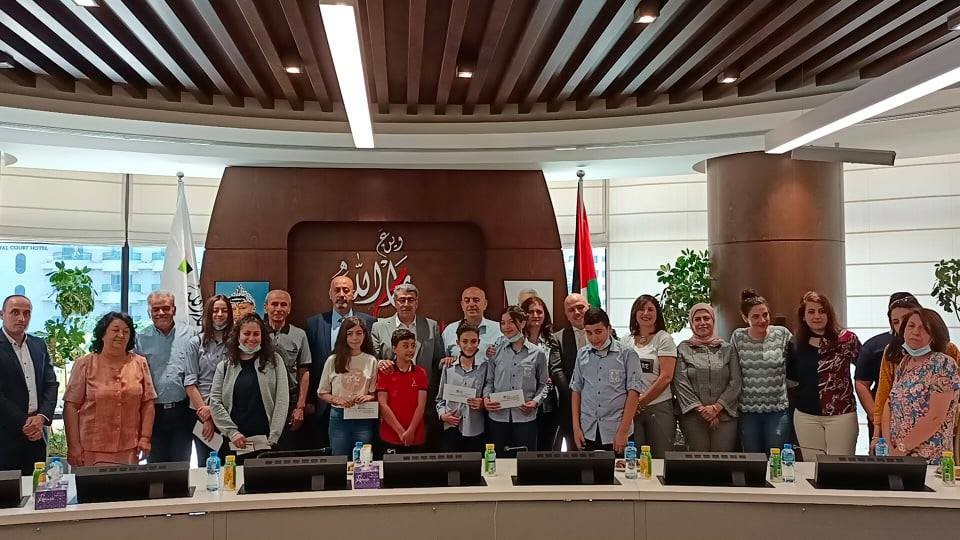 The prizes were distributed to the winning students in the Competition as announced by the Ramallah Municipality at the beginning of 2021, whereby the students were invited to tape a short video for an environmental initiative of their creation and implementation in their surroundings at home, in the street or at school.