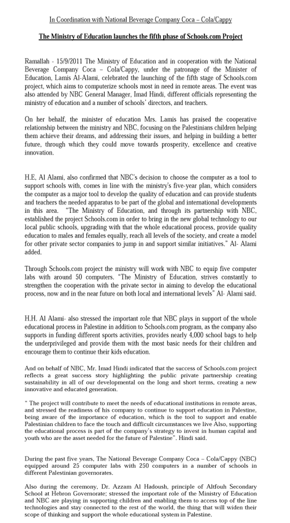 The Ministry of Education launches the fifth phase of Schools.com Project